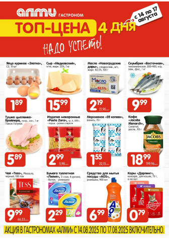 Текущие и будущие каталоги акций "Топ-цена (Алми только гастрономы) (14 - 17 Августа 2025)" супермаркетов АЛМИ Орши