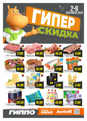 Текущие и будущие каталоги акций "Гипер скидка (2 - 8 Сентября 2025)" супермаркетов Гиппо Островеца