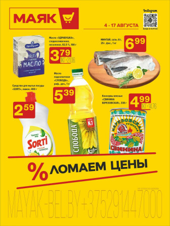 Текущие и будущие каталоги акций "Акционная листовка (4 - 17 Августа 2025)" магазинов МАЯК Пинска