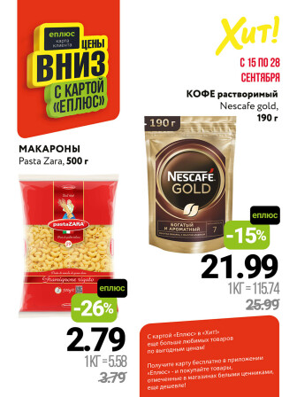 Специально для Вас, и для Вашего удобства, мы сгруппировали максимальное количество актуальных, а главное акционных предложений от супермаркетов Беларуси. На данной странице Вы сможете ознакомиться с акцией "Цены вниз! (С картой "Еплюс")", которая проводится супермаркетом Хит