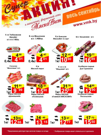 Специально для Вас, и для Вашего удобства, мы сгруппировали максимальное количество актуальных, а главное акционных предложений от супермаркетов Беларуси. На данной странице Вы сможете ознакомиться с акцией "Акционные предложения!", которая проводится супермаркетом МяскоВит