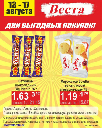 Текущие и будущие каталоги акций "Дни выгодных покупок (13 - 17 Августа 2025)" супермаркетов Веста Полоцка