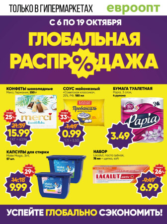 Текущие и будущие каталоги акций "Глобальная распродажа! (предложение только для гипермаркетов) (6 - 19 Октября 2025)" супермаркетов Евроопт Полоцка