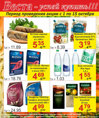 Текущие и будущие каталоги акций "Успей купить! (1 - 15 Октября 2025)" супермаркетов Веста Полоцка