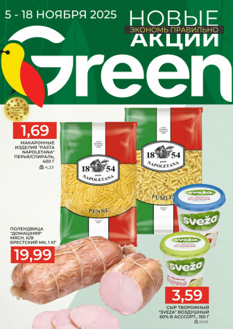 Текущие и будущие каталоги акций "Акционная листовка! (5 - 18 Ноября 2025)" супермаркетов Green Речицы