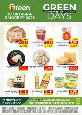 Текущие и будущие каталоги акций "GREEN DAYS! (30 Октября - 2 Ноября 2025)" супермаркетов Green Речицы