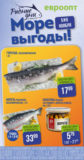 Текущие и будущие каталоги акций "Рыбные дни! (предложение только для гипермаркетов и супермаркетов) (5 - 6 Ноября 2025)" супермаркетов Евроопт Речицы