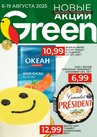 Текущие и будущие каталоги акций "Акционная листовка! (6 - 19 Августа 2025)" супермаркетов Green Солигорска
