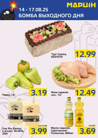 Текущие и будущие каталоги акций "Бомба выходного дня! (14 - 17 Августа 2025)" супермаркетов MART INN Солигорска