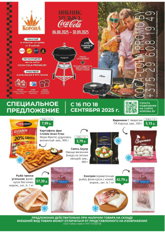 Текущие и будущие каталоги акций "Марафон скидок (16 - 18 Сентября 2025)" супермаркетов Корона Солигорска