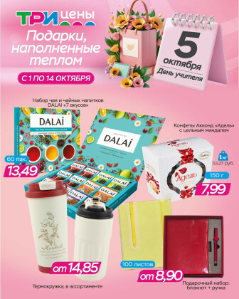 Специально для Вас, и для Вашего удобства, мы сгруппировали максимальное количество актуальных, а главное акционных предложений от супермаркетов Беларуси. На данной странице Вы сможете ознакомиться с акцией "День учителя уже близко!", которая проводится супермаркетом Три цены