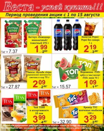 Текущие и будущие каталоги акций "Успей купить! (1 - 15 Августа 2025)" супермаркетов Веста Светлогорска