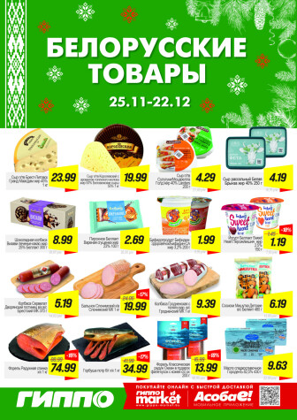 Специально для Вас, и для Вашего удобства, мы сгруппировали максимальное количество актуальных, а главное акционных предложений от супермаркетов Беларуси. На данной странице Вы сможете ознакомиться с акцией "Белорусские товары", которая проводится супермаркетом Гиппо