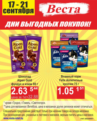 Текущие и будущие каталоги акций "Дни выгодных покупок (17 - 21 Сентября 2025)" супермаркетов Веста Витебска
