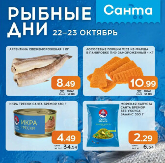 Текущие и будущие каталоги акций "Рыбные дни! (22 - 23 Октября 2025)" супермаркетов Санта Витебска