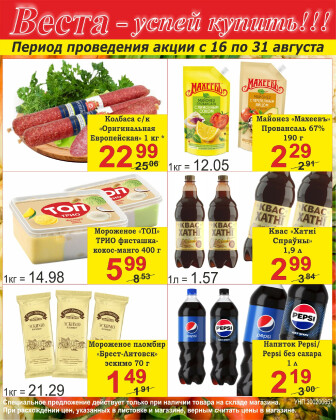 Текущие и будущие каталоги акций "Успей купить! (16 - 31 Августа 2025)" супермаркетов Веста Витебска