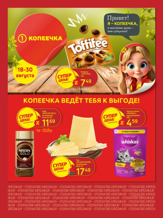 Текущие и будущие каталоги акций "Акционные предложения! (18 - 30 Августа 2025)" супермаркетов Копеечка Жлобина
