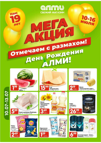 Специально для Вас, и для Вашего удобства, мы сгруппировали максимальное количество актуальных, а главное акционных предложений от супермаркетов Беларуси. На данной странице Вы сможете ознакомиться с акцией "Мега акция (Алми только для универсамов)", которая проводится супермаркетом АЛМИ