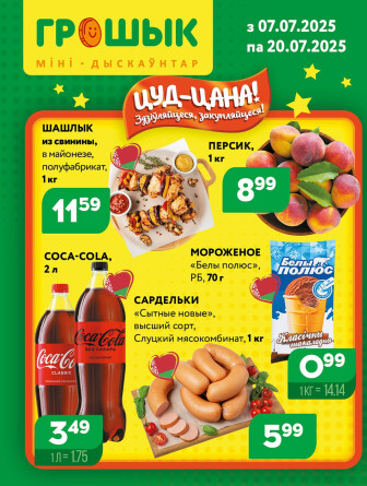 Текущие и будущие каталоги акций "Акционная листовка для дискаунтера «Грошык Міні» (7 - 20 Июля 2025)" супермаркетов Грошык Боровлян