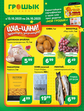Текущие и будущие каталоги акций "Акционная листовка! (13 - 26 Октября 2025)" супермаркетов Грошык Бреста