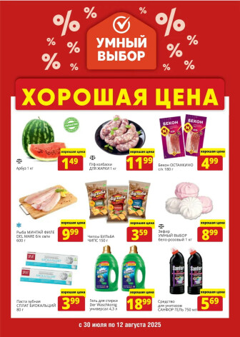 Специально для Вас, и для Вашего удобства, мы сгруппировали максимальное количество актуальных, а главное акционных предложений от супермаркетов Беларуси. На данной странице Вы сможете ознакомиться с акцией "Хорошая цена!", которая проводится супермаркетом Умный выбор