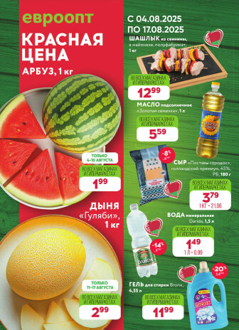 Текущие и будущие каталоги акций "Красная цена! (4 - 17 Августа 2025)" супермаркетов Евроопт