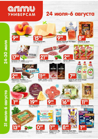 Текущие и будущие каталоги акций "Акционная листовка (Алми только для универсамов) (24 Июля - 6 Августа 2025)" супермаркетов Eurospar Кобрина