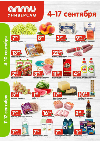 Текущие и будущие каталоги акций "Акционная листовка (Алми только для универсамов) (4 - 17 Сентября 2025)" супермаркетов АЛМИ Лиды