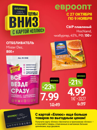 Текущие и будущие каталоги акций "Цены вниз! (С картой "Еплюс") (27 Октября - 9 Ноября 2025)" супермаркетов Евроопт Лиды