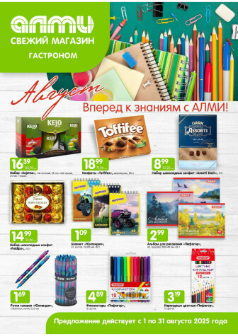 Текущие и будущие каталоги акций "Месяц акционных предложений! (только для гастрономов Алми) (1 - 31 Августа 2025)" супермаркетов АЛМИ, Spar Минска