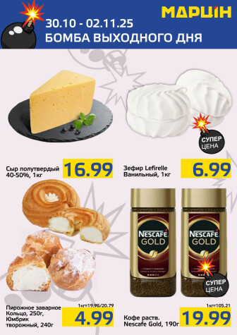 Текущие и будущие каталоги акций "Бомба выходного дня! (30 Октября - 2 Ноября 2025)" супермаркетов MART INN Молодечно