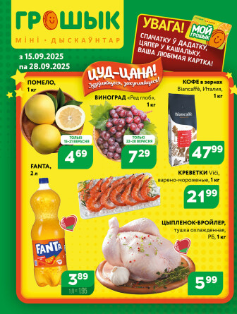 Специально для Вас, и для Вашего удобства, мы сгруппировали максимальное количество актуальных, а главное акционных предложений от супермаркетов Беларуси. На данной странице Вы сможете ознакомиться с акцией "Акционная листовка для дискаунтера «Грошык Міні»", которая проводится супермаркетом Грошык