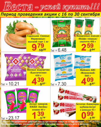 Текущие и будущие каталоги акций "Успей купить! (16 - 30 Сентября 2025)" супермаркетов Веста Новополоцка