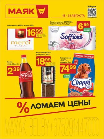 Текущие и будущие каталоги акций "Акционная листовка (18 - 31 Августа 2025)" магазинов МАЯК Полоцка