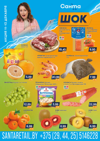 Специально для Вас, и для Вашего удобства, мы сгруппировали максимальное количество актуальных, а главное акционных предложений от супермаркетов Беларуси. На данной странице Вы сможете ознакомиться с акцией "Санта шок!", которая проводится супермаркетом Санта