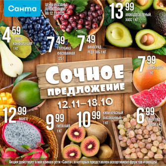 Текущие и будущие каталоги акций "Сочное предложение! (12 - 18 Ноября 2025)" супермаркетов Санта Радошковичей