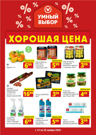 Текущие и будущие каталоги акций "Хорошая цена! (11 - 25 Ноября 2025)" магазинов Умный выбор Рогачева