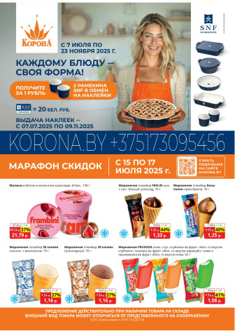 Текущие и будущие каталоги акций "Марафон скидок (15 - 17 Июля 2025)" супермаркетов Корона Шклова