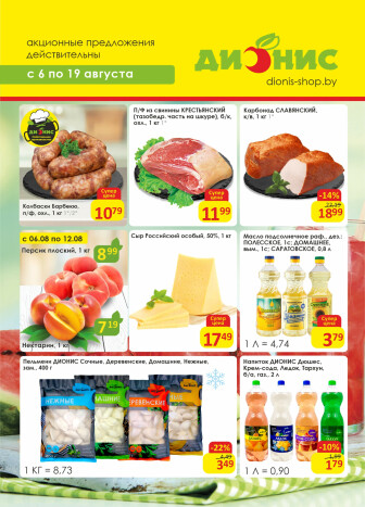 Текущие и будущие каталоги акций "Акционная листовка! (6 - 19 Августа 2025)" супермаркетов Дионис Витебска