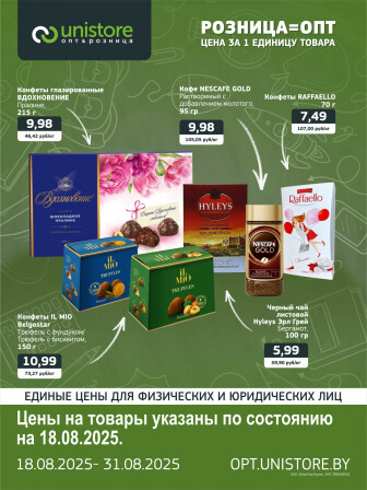 Текущие и будущие каталоги акций "Акционная листовка (18 - 31 Августа 2025)" магазинов Unistore Витебска