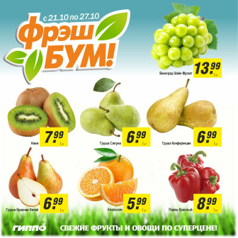 Текущие и будущие каталоги акций "Фрэш бум! (21 - 27 Октября 2025)" супермаркетов Гиппо Витебска