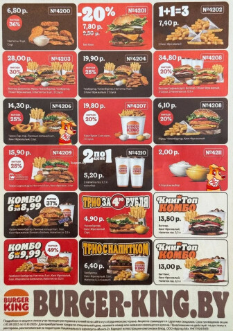 Специально для Вас, и для Вашего удобства, мы сгруппировали максимальное количество актуальных, а главное акционных предложений от супермаркетов Беларуси. На данной странице Вы сможете ознакомиться с акцией "Купоны и скидки", которая проводится супермаркетом Burger King