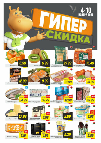Текущие и будущие каталоги акций "Гипер скидка (4 - 10 Ноября 2025)" супермаркетов Гиппо Заславля