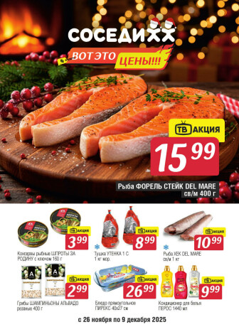 Текущие и будущие каталоги акций "Акционная листовка! (26 Ноября - 9 Декабря 2025)" супермаркетов Соседи Жлобина